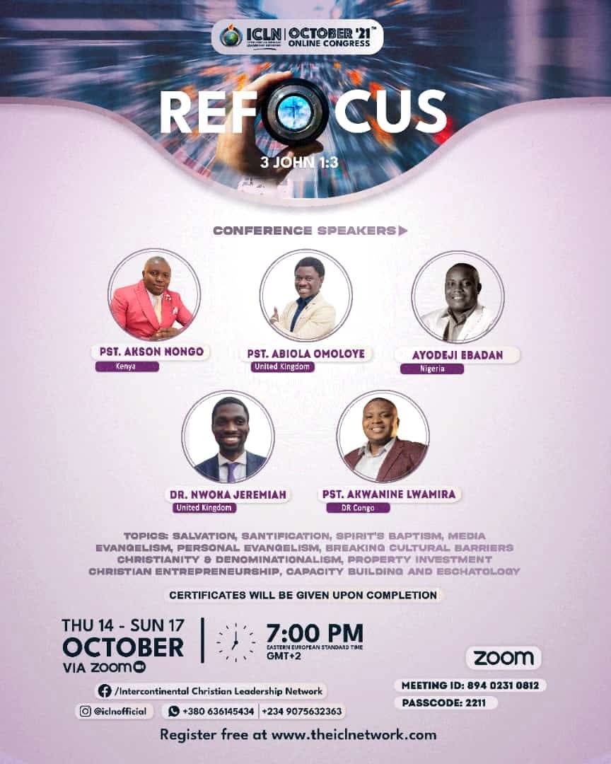 The ICLN October 2021 Online Congress, themed “Refocus” and inspired by 3 John 1:3, was a powerful time of spiritual renewal and realignment for participants across different nations. Held over four days via Zoom, the program created an atmosphere of deep reflection, learning, and recommitment to purposeful Christian living.